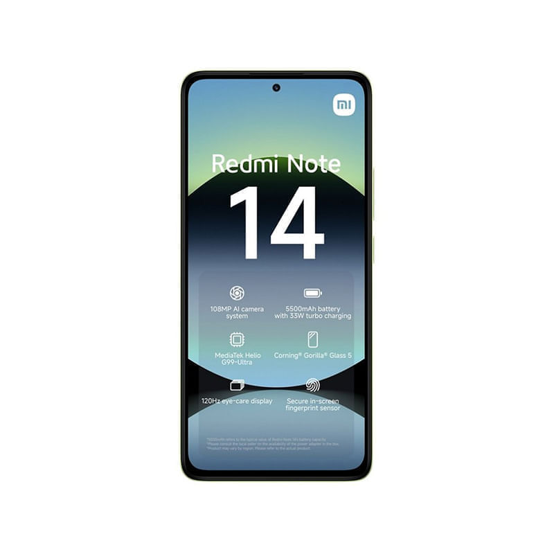 Xiaomi Note 14 4G, un smartphone diseñado para aquellos que buscan un equilibrio perfecto entre tecnología avanzada y diseño elegante. Pantalla AMOLED de 6.67". Disfruta de una resolución de 2400 × 1080 y una tasa de actualización de hasta 120Hz, con un brillo máximo de 1800 nits para una visualización clara y vibrante. Procesador Helio G99-Ultra. Equipado con un procesador de ocho núcleos y tecnología de proceso de fabricación de 6nm. La cámara principal de 108MP, acompañada de una cámara de profundidad de 2MP, una cámara macro de 2MP para mayor versatilidad y la cámara frontal de 20MP. Batería de 5500mAh con Carga Turbo de 33W.